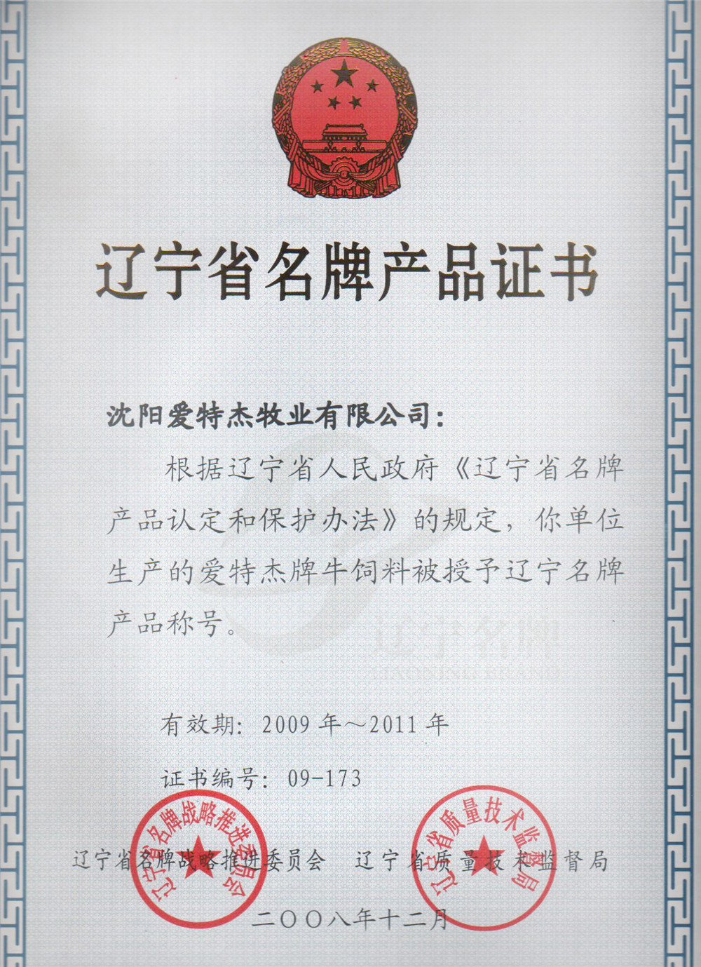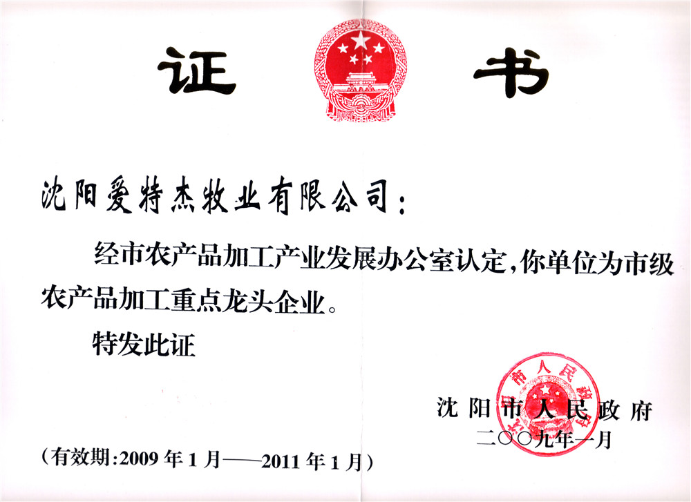09年省重點(diǎn)龍頭企業(yè)證書