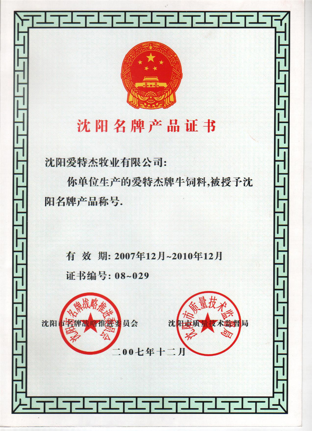 07年沈陽市名牌產(chǎn)品